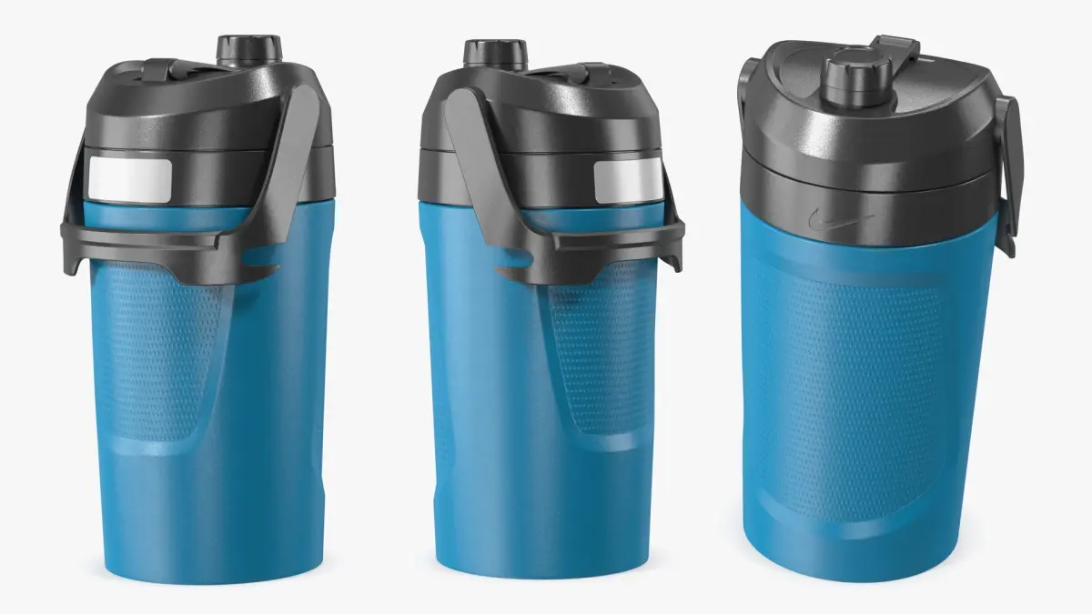 For sports equipment visualization, gym accessory design, e-commerce product showcases, lifestyle marketing, outdoor recreation branding, packaging design, industrial design presentations, and promotional content related to hydration and wellness.