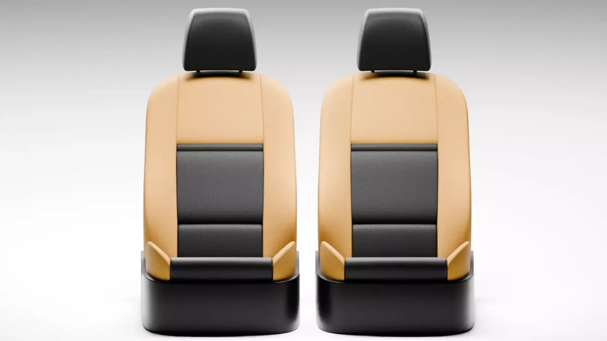 A realistic pair of sport car interior seats, designed with premium detail and accurate proportions for high-quality 3D visualizations, animations, and product presentations. The model features a stylish two-tone leather and fabric material, making it suitable for both luxury and performance vehicle interiors.
