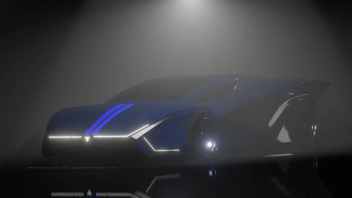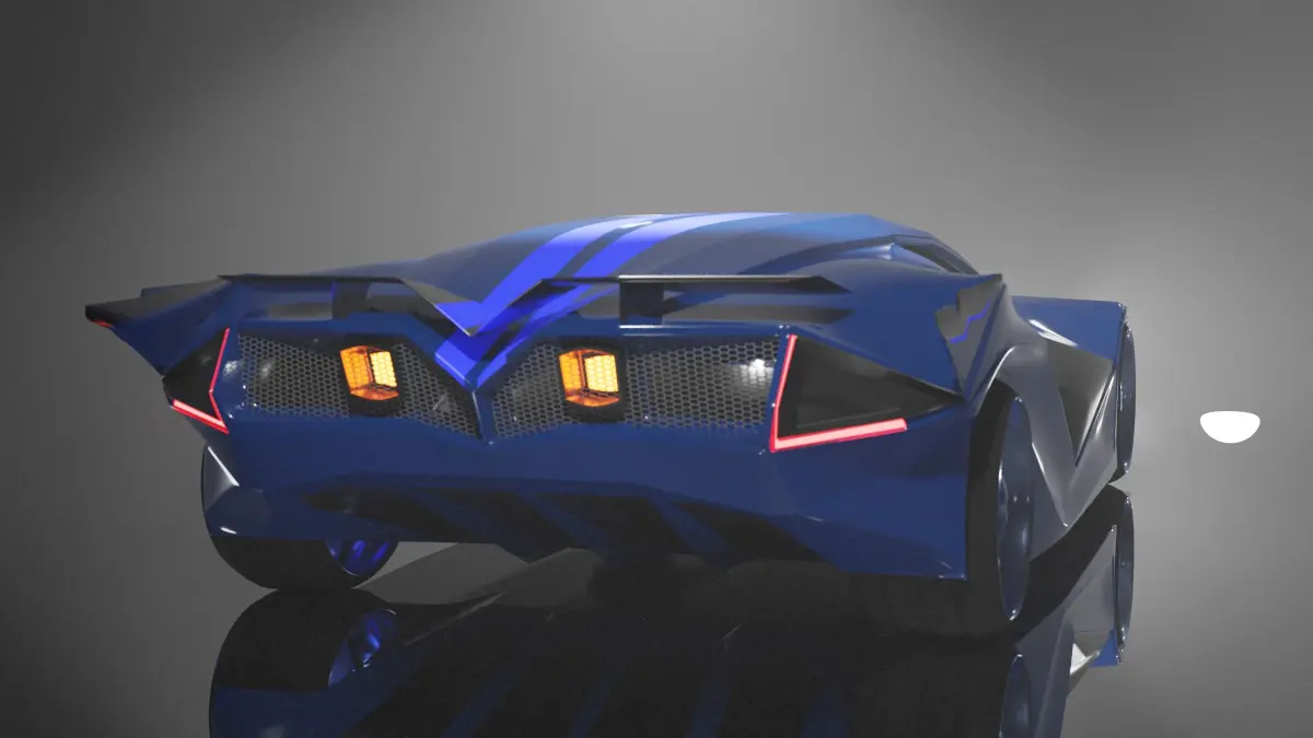 a new supercar model. stylish body, rear-engined roadster in dark blue color. the average number of polygons, a simple grid.the files are saved in the OBJ and Blend format. tires, body, grids are in separate objects.