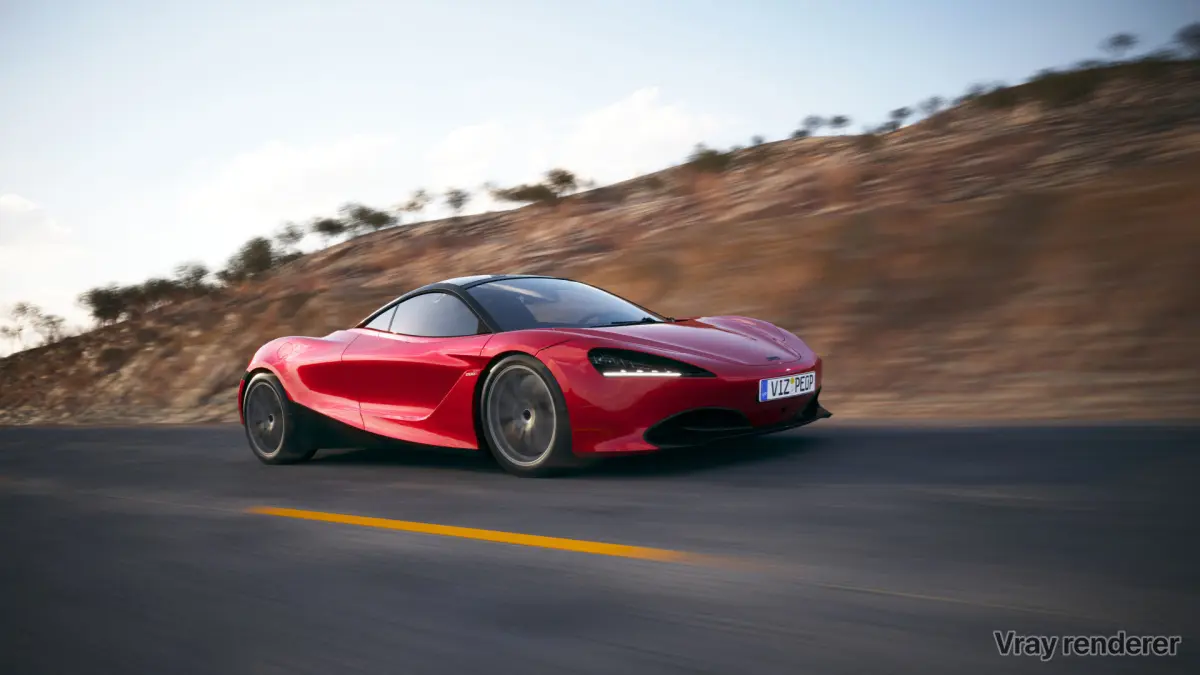 Desert shore 3d scene for automotive rendering. The setup produces high speed, dynamic scenery in the desert environment.