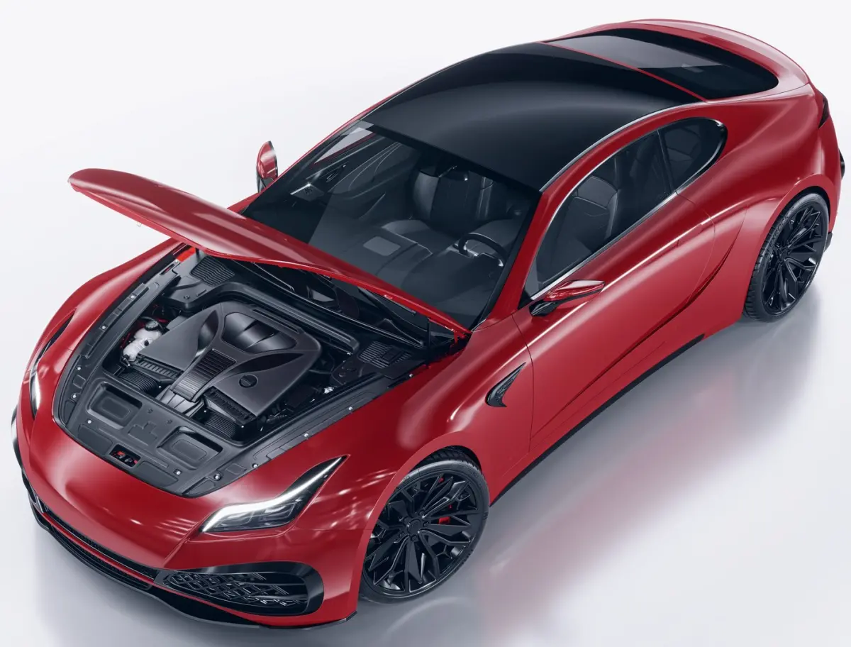 High detailed 3D model of Sport Coupe with interior, engine, bottom, suspension, trunk. The model is designed by Alexrock3d.