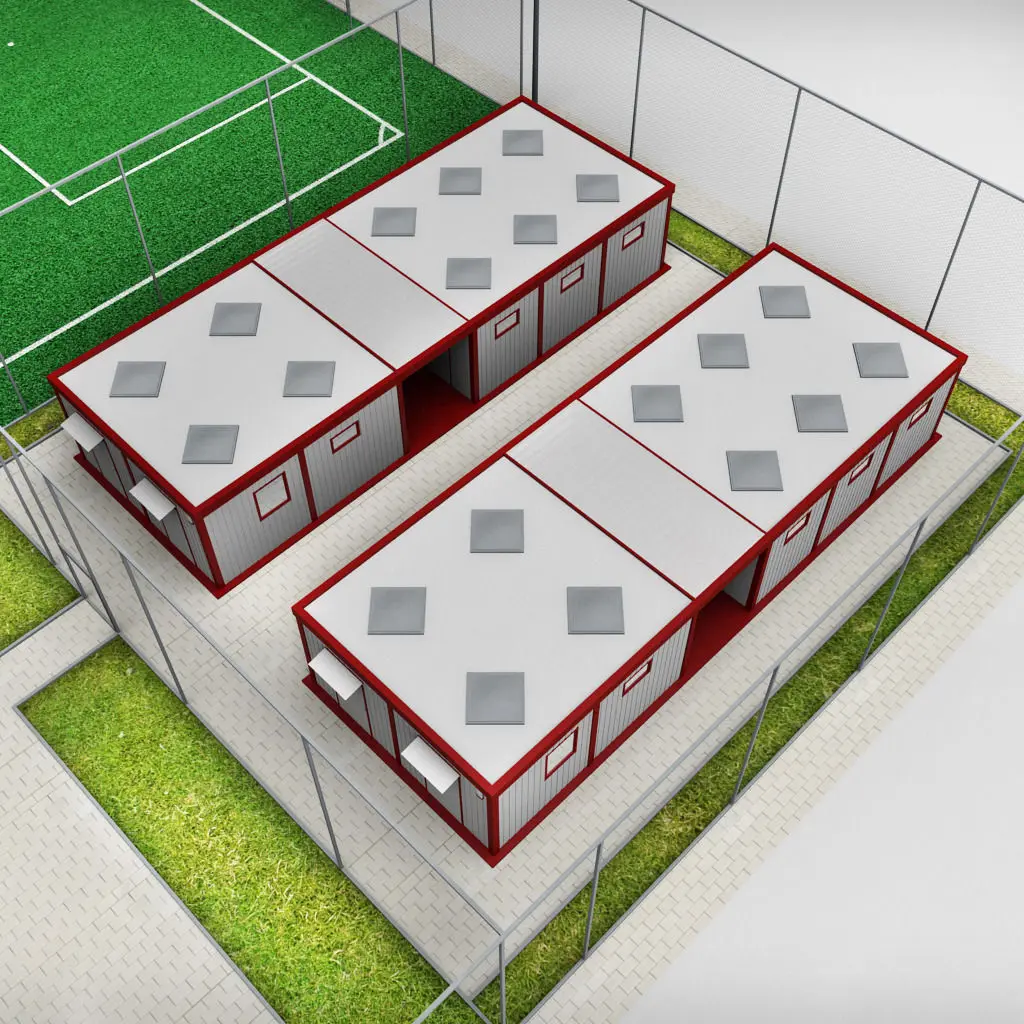 - container house - net elements - football pitch - multi sport pitch - lights