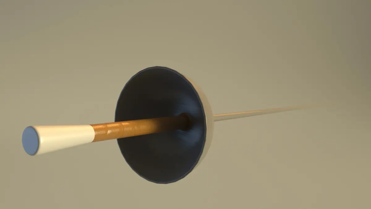 A basic model of a fencing foil in steel and leatherCan be animated by a simple setup.One lowpoly mesh with a multisub-object materials (3)