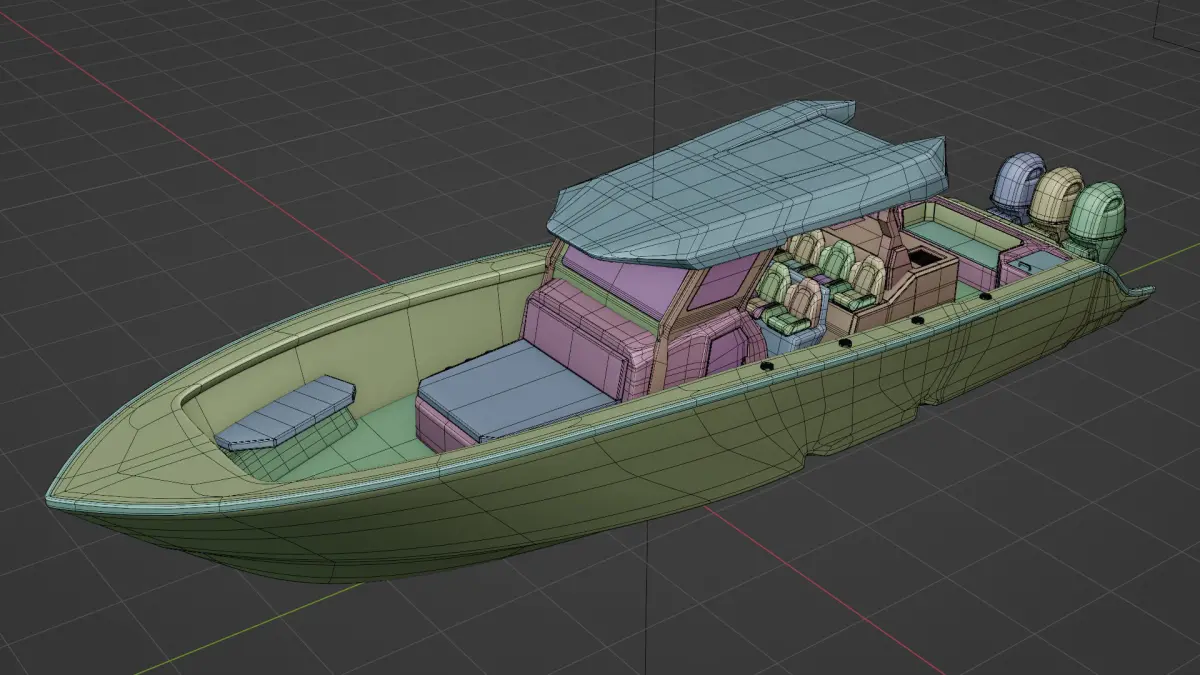 37ft Sport Fishing Motor Boat 3D Model (Highly Detailed, High Poly)UV UnwrappedCreated using Blender... Model available in FBX and OBJ formatsSuitable for any 3D Visualization