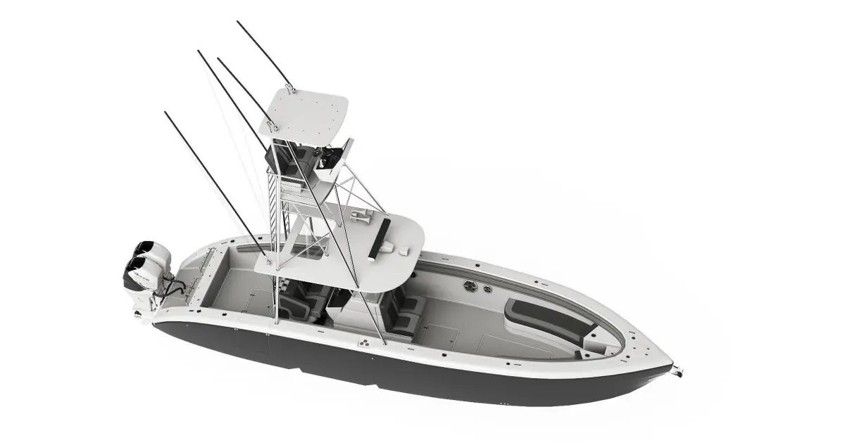 - The model of the motor boat is designed for fishing.