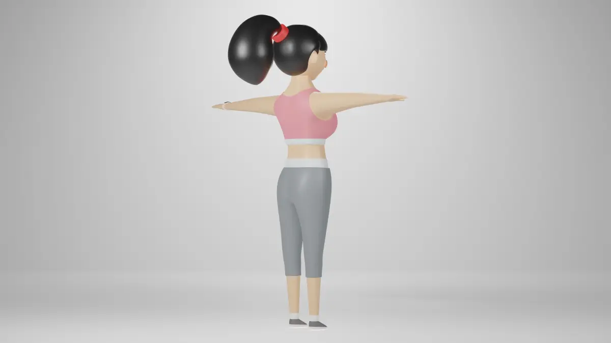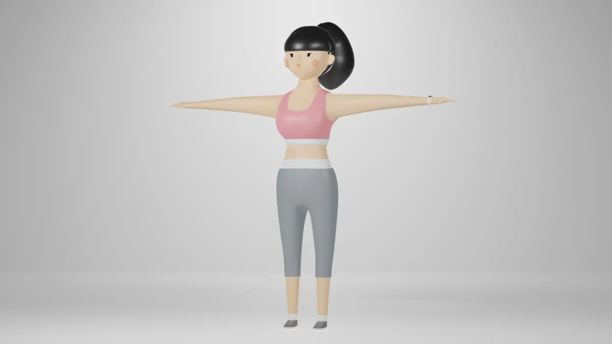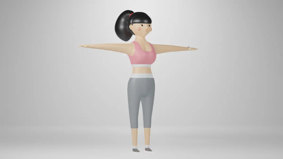 Sport girlLook at this 3D low polygon of female model.In exercise clothes with long black hairRigged all objects in blender formats.Poly count Vertex 23,610 Face 23,814