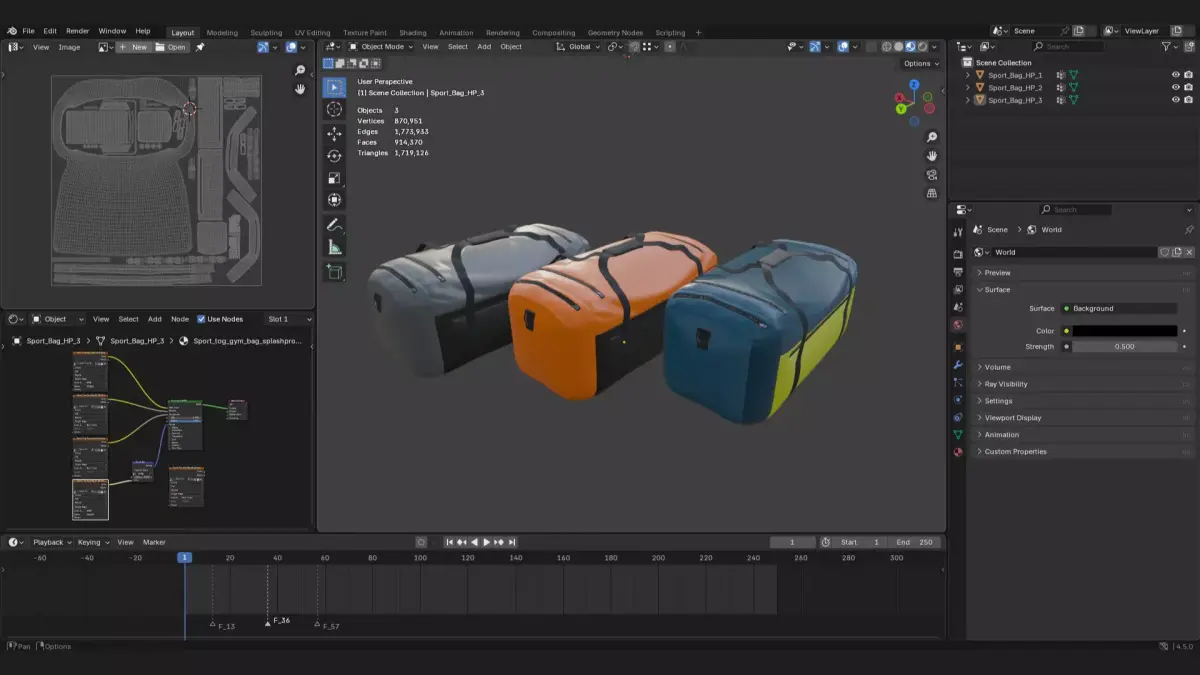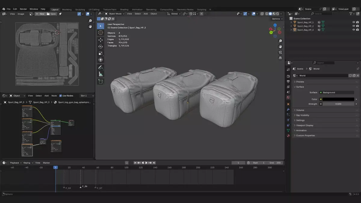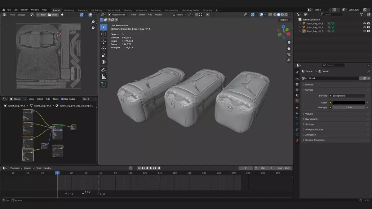 Product DescriptionThis is a realistic 3d model of a gym bag, also called tog bag or sports bag. It is used for sports clothes, fitness items or gym.Use it for freelance concepts, renders, 3d environments or scenes, especially for gyms, fitness, sporting goods or sportwear or fashion 3d props