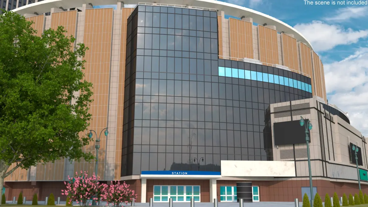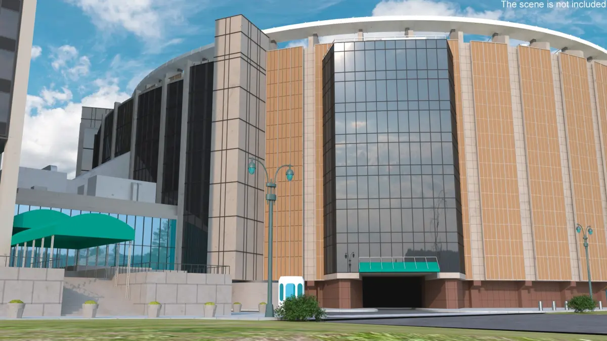 Sports and Entertainment Arena and Office Tower is a high quality, photo real 3d model that will enhance detail and realism to any of your rendering projects. The model has a fully textured, detailed design that allows for close-up renders, and was originally modeled in 3ds Max 2020 and rendered with V-Ray. Renders have no postprocessing!