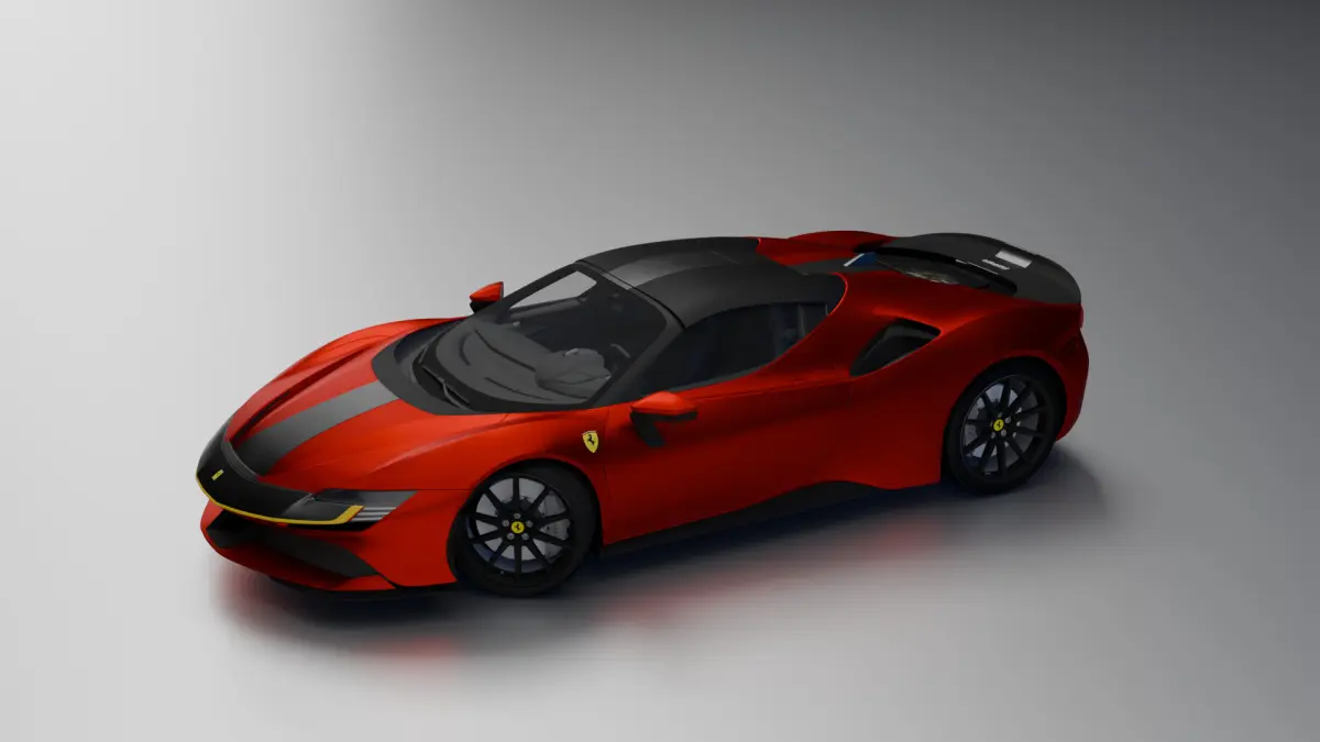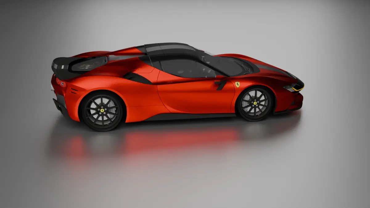 FERRARI CAR IN RED METARIAL AND TEXTURE