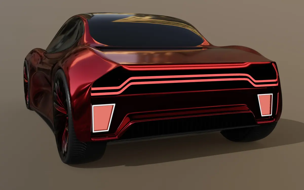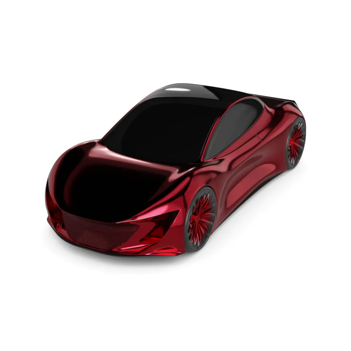 A vibrant red sports car with a glossy finish, showcasing a curved body and aerodynamic shape, embodying the cutting-edge technology of contemporary automotive design.