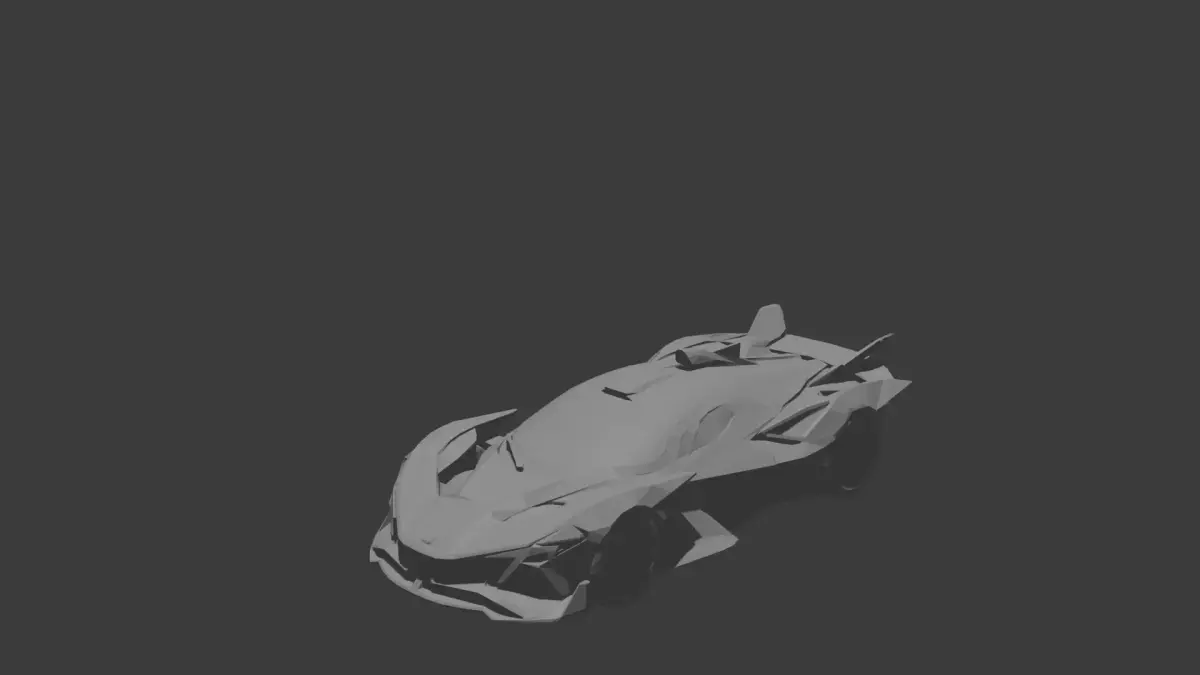 This is a high-performance sports car, likely a hypercar, with a sleek and aggressive design. The car is rendered in monochrome, highlighting its sculpted form and complex aerodynamic features.