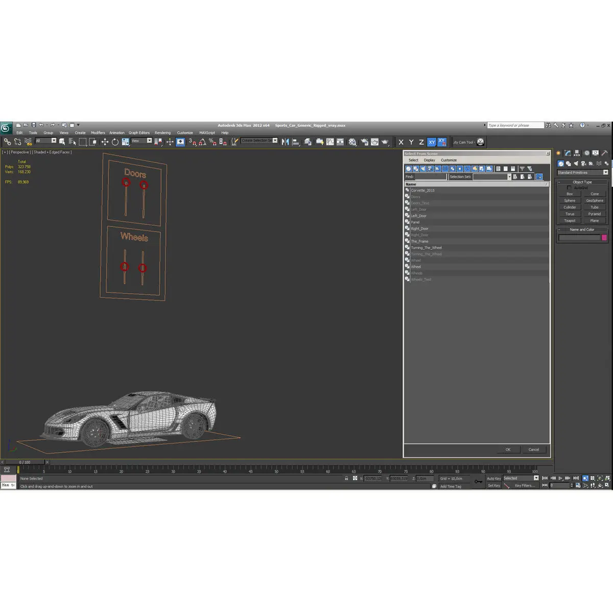 Sports Car is ready to be animated. You can easily position it the way you need or animate it the way your project requires using helpers in 3D Studio Max. See the turntable to get an idea of how animation works.