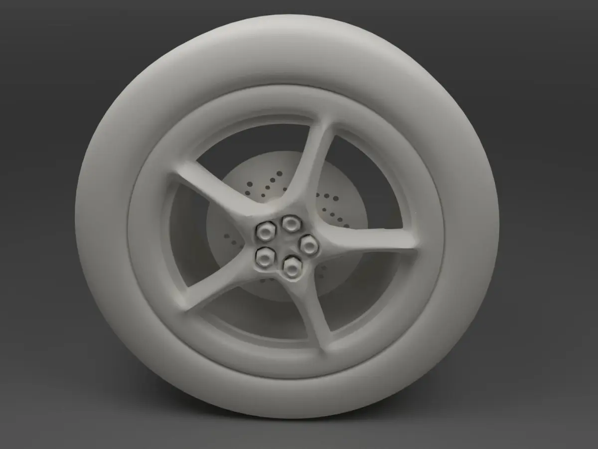 Detailed model of sportscar tire with hub and nuts. Originally modeled in Lightwave. Lightwave File has subdivision geometry, other formats have frozen polygon geometry.