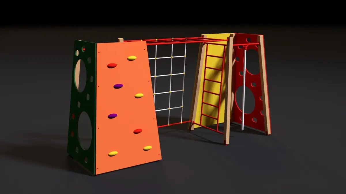 Workout. Children's sports complex. Sports complex for strength exercises. All textures and materials are customized. The model is ready for visualization Corona render. The archive contains files: 3ds max 2017, 3ds max 2014, fbx, obj. Thank you for choosing us!)))