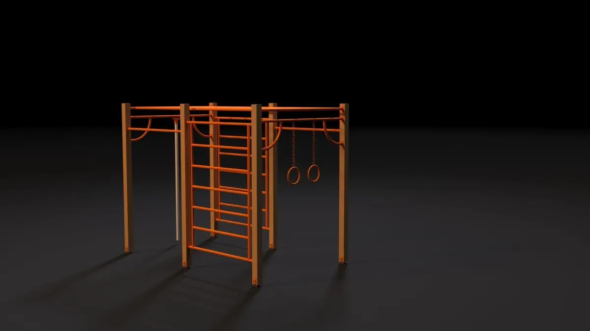 Workout. Children's sports complex. Sports complex for strength exercises. All textures and materials are customized. The model is ready for visualization Corona render. The archive contains files: 3ds max 2017, 3ds max 2014, fbx, obj. Thank you for choosing us!)))
