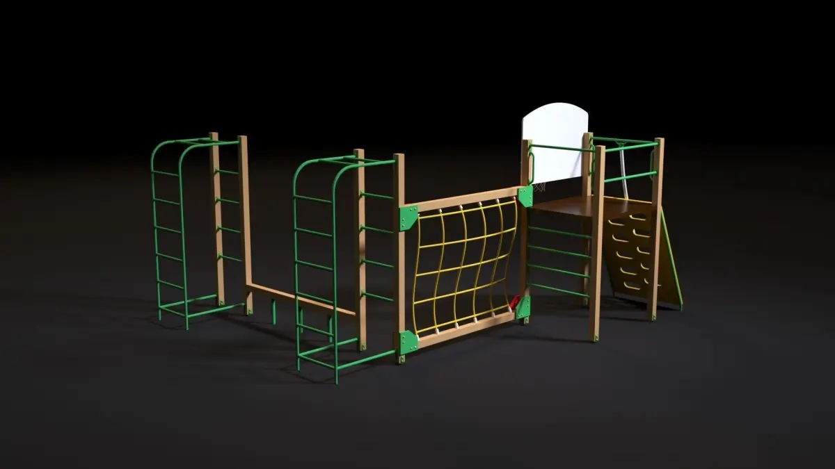 Workout. Children's sports complex. Sports complex for strength exercises. All textures and materials are customized. The model is ready for visualization Corona render. The archive contains files: 3ds max 2017, 3ds max 2014, fbx, obj. Thank you for choosing us!)))