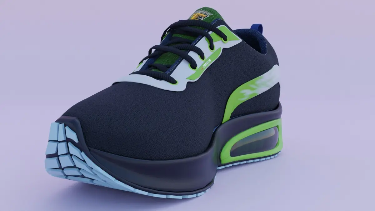 Campus shoe inspired design. Made for running, gym, and sports purpose. In classic colour combinations of green, blue and white, I am a student in university myself, so i feel you all. I play games, eat ramen and watch anime. this is my very first upload hope you guys like it.