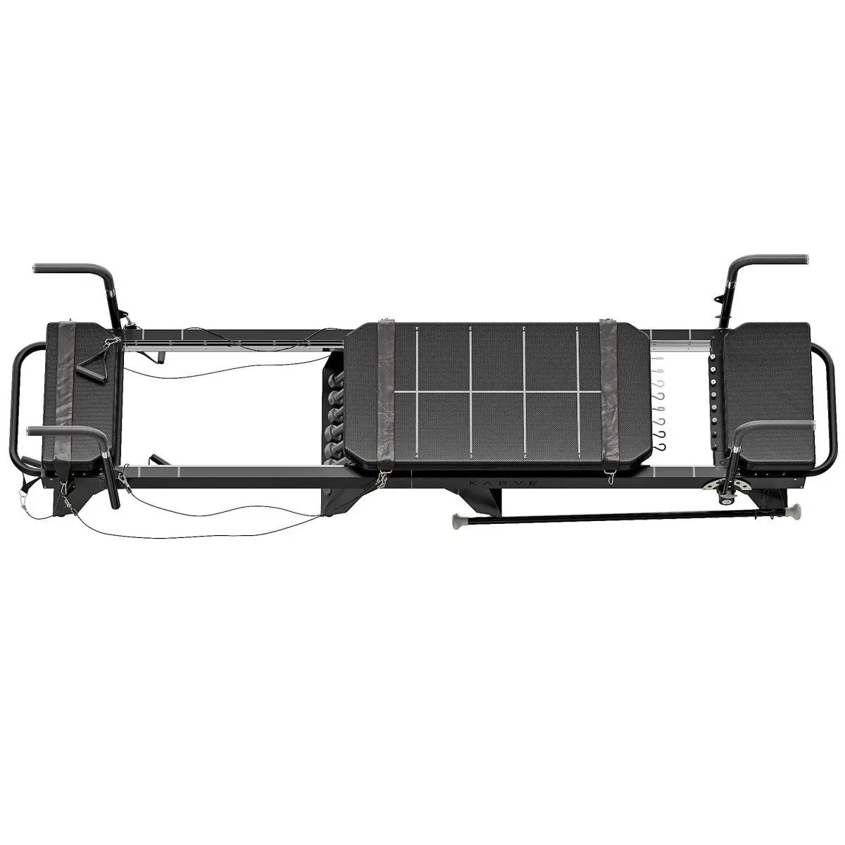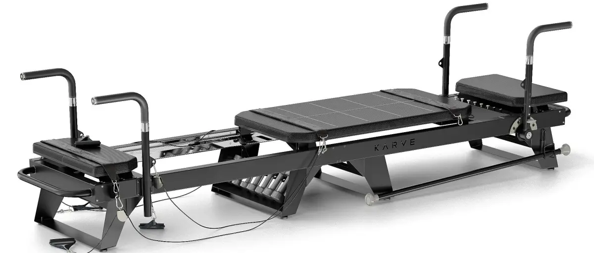 Model of the Pilates Reformer Machine power sports trainer for pilates physical exercises.