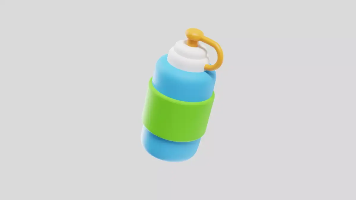 Fresh 3D sports water bottle icon perfect for tennis players, fitness visuals, and hydration themes.