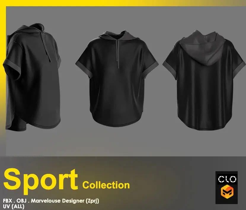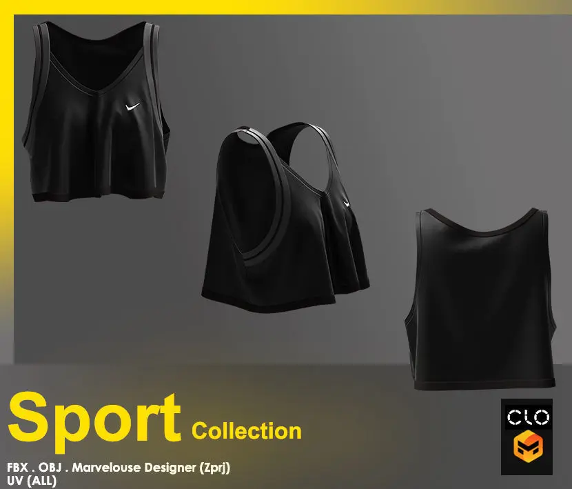 14 sport outfit pieces containing croptops, shorts, hoody, sunglasses, footwear . Files prepared in clo3d, marvelouse designer and fbx and obj files are available .