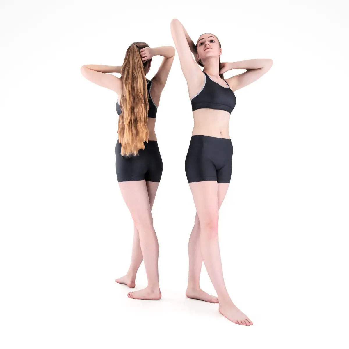 This is a true human size and detailed model of a sporty beautiful young woman of Caucasian appearance. The model is captured in casual pose to be perfectly matching for variety of architectural visualizations, e.g. sport ground, gym, beach, etc.