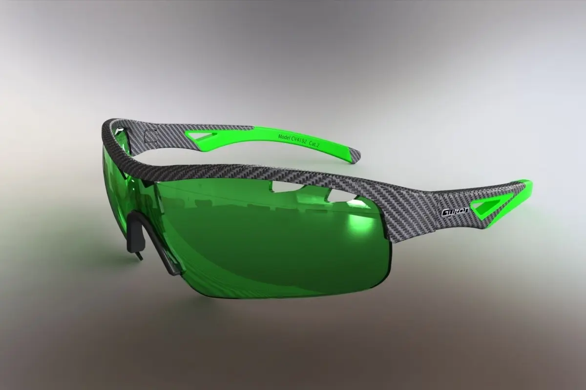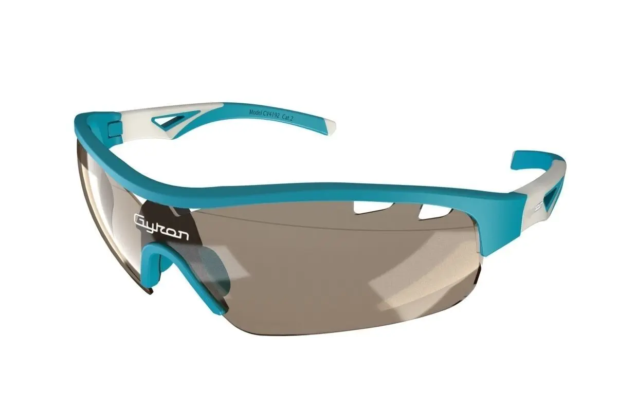 Sporty wrap around sunglasses with vented lenses, adjustable rubber nose pads and ear tips