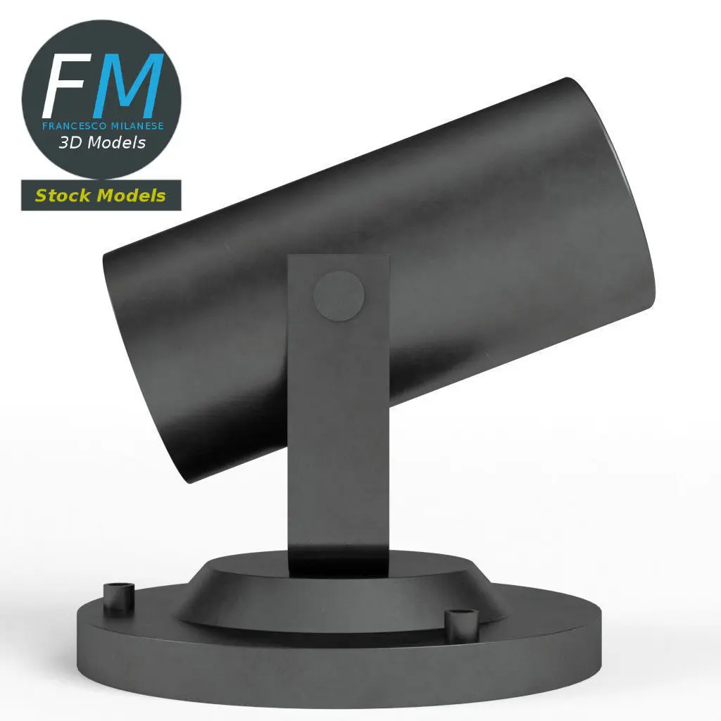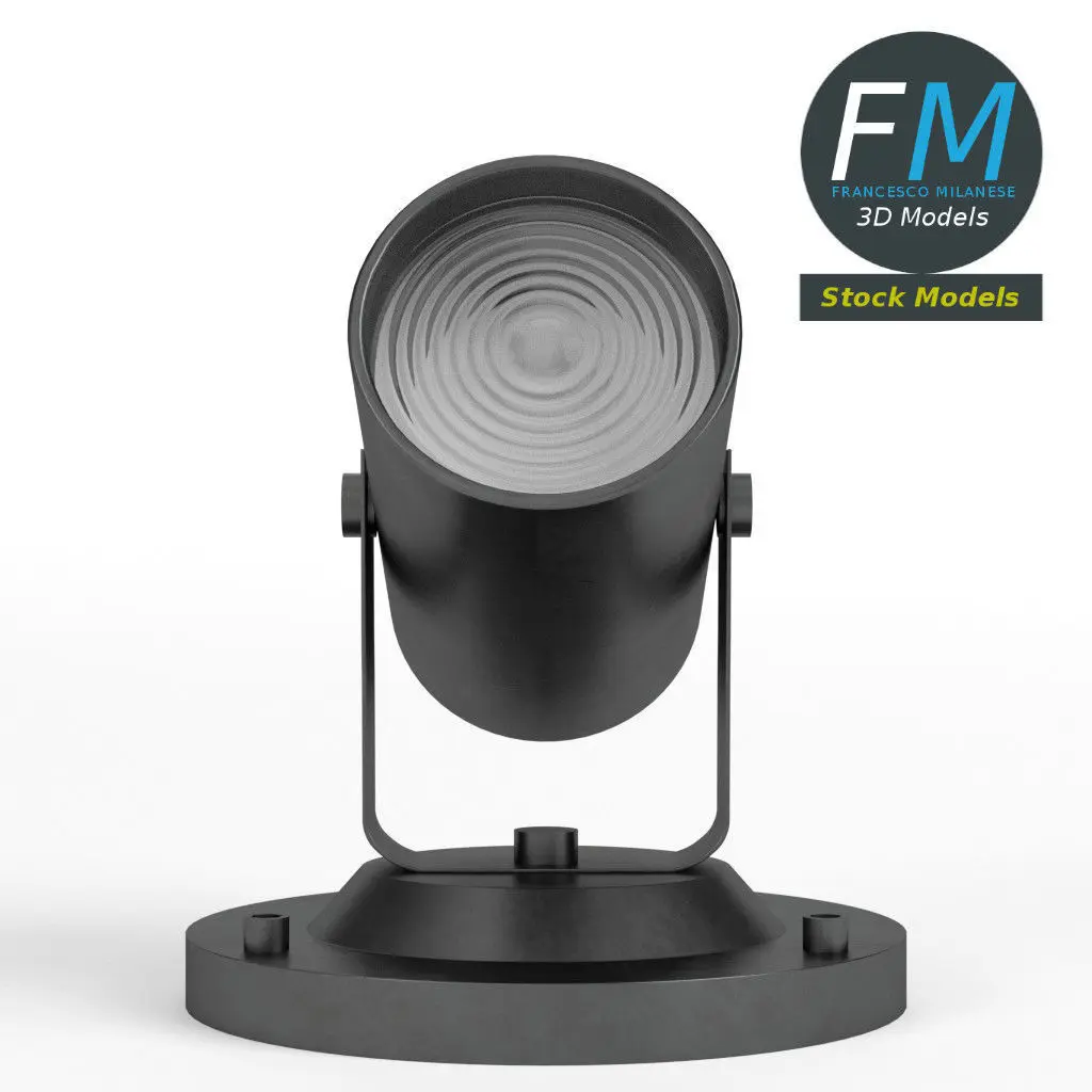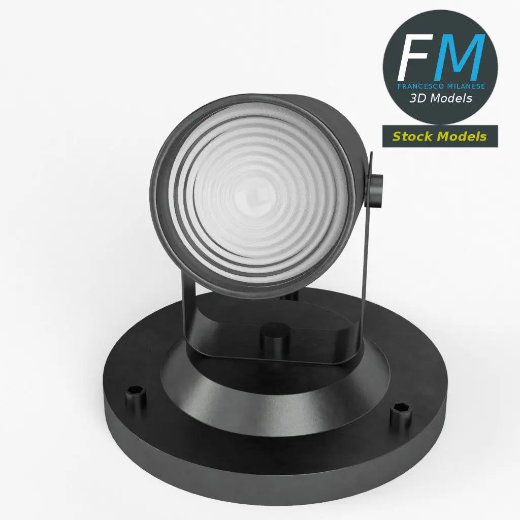 Spot light 3D Model. 2 individual objects (base, lens), each one with its own non overlapping UV Layout map, Materials and PBR Textures set. Production-ready 3D Model, with PBR materials, textures, non overlapping UV Layout map provided in the package.