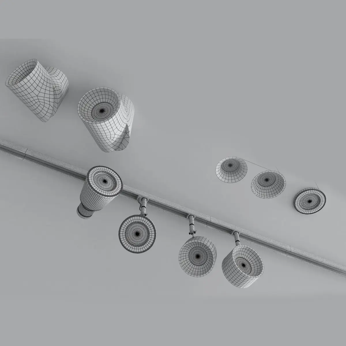 Name: spot_light_setVersion: 2015Units: CentimetersDimension: 120.45 x 39.86 x 20.74Polys: 41 073XForm: YesBox Trick: YesModel Parts: 64Render:vray/corona Formats: 3Ds Max 2015, OBJ