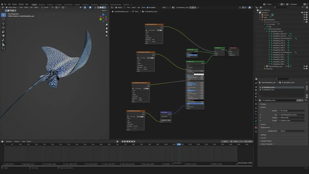 The Spotted Eagle Ray (Aetobatus narinari)12 animations: