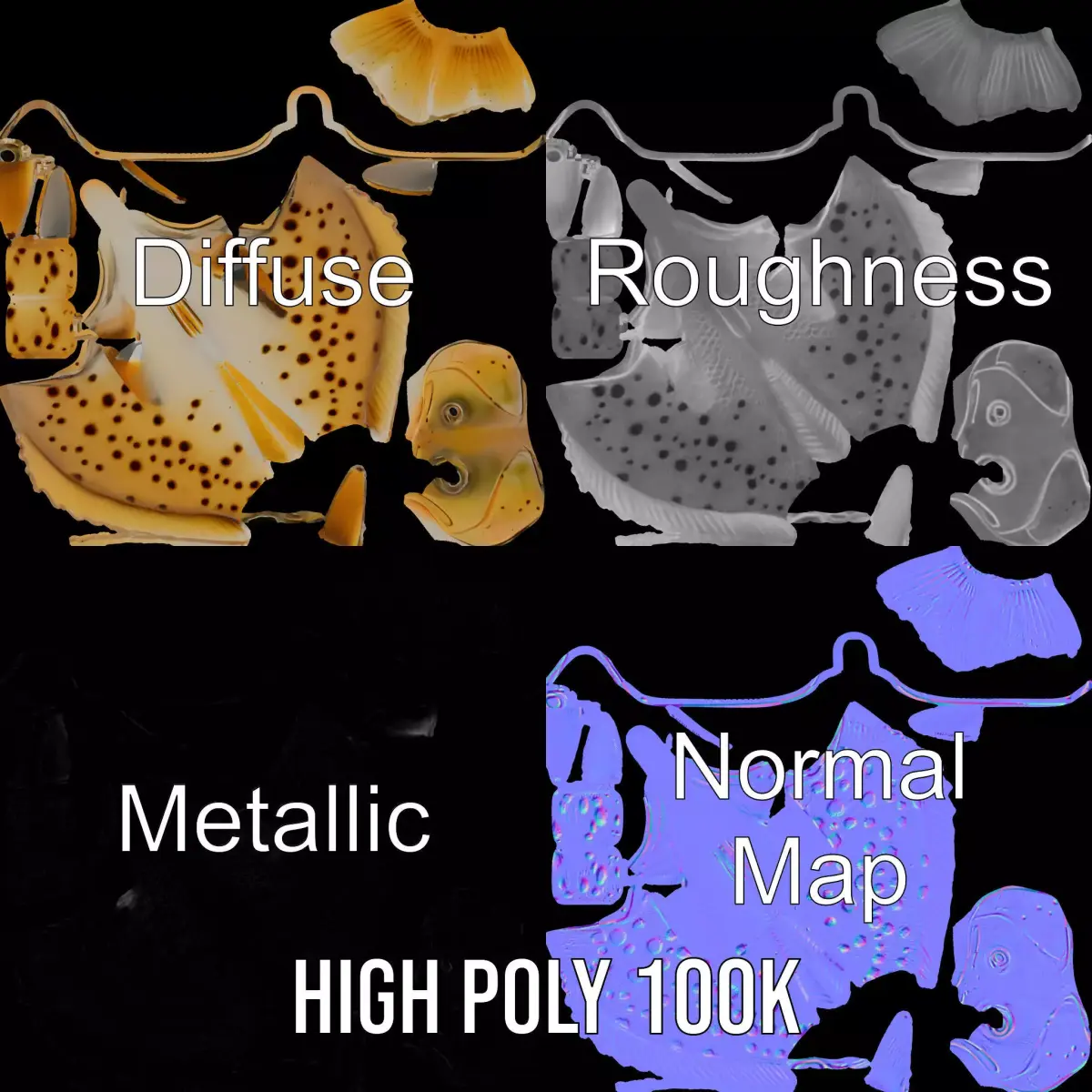 The Spotted Fish model pack is perfect for marine simulations, educational exhibits, or artistic animations, enhancing any project with its realistic detailing and versatile application.