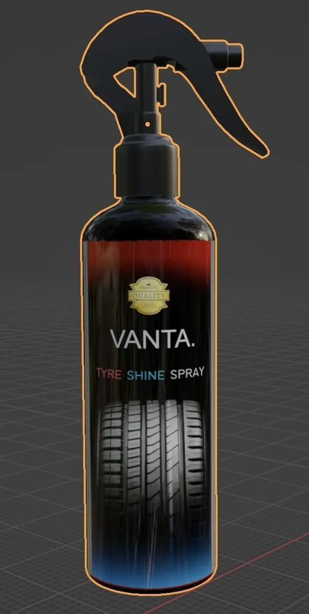 This is a perfect spray bottle, with the movable trigger and shading up to the mark. Alsoit is present with a layer of sticker on it.I made it for my amazon seller product image. You can find the product on amazon as VANTA TYRE SHINER.