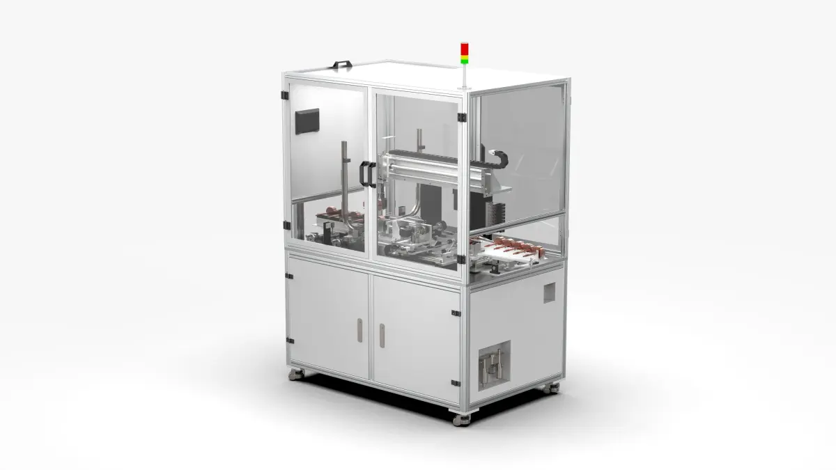 Rotor snap ring oiling integrated machine This equipment is used for rotor processing of squirrel cage rotor manufacturers. The main function is to assemble the rotor bearing with snap ring and to coat the squirrel cage rotor with antirust oil (light gold water). The rotor is sent into the circlip tooling through the feeding mechanism. After the circlip at the rotor bearing position is assembled in place, the rotor is sent to the anti-rust oil coating station through the pneumatic transplanting mechanism. At this time, the oiled roller is moved to the The rotating shaft drives the rotor to rotate and apply oil. After the completion, the connecting rod transplanting mechanism sends the rotor to the unloading chute.