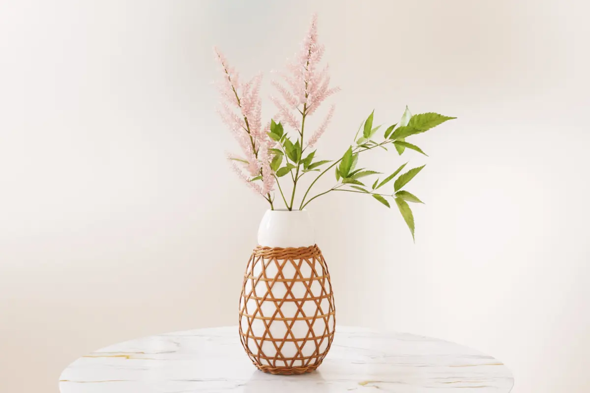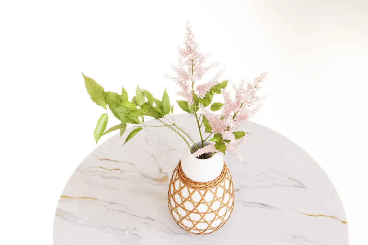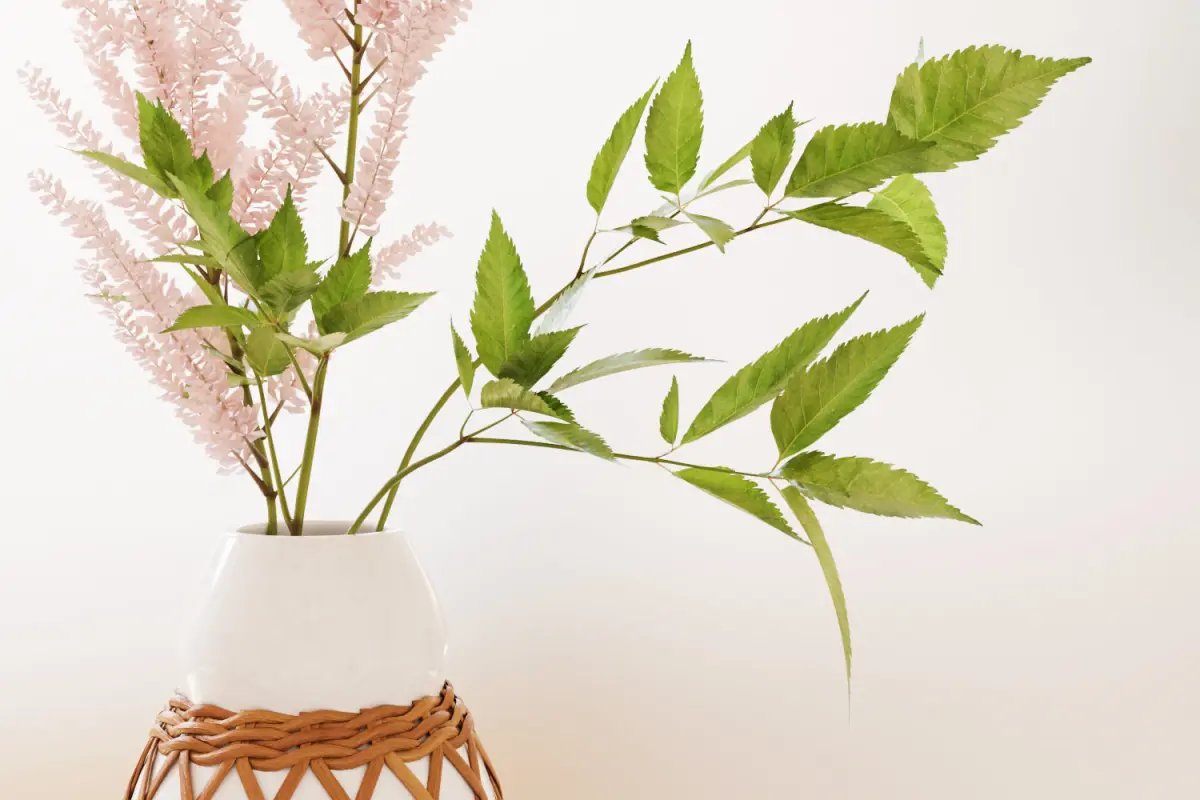 High-quality, photorealistic Spring plant inside a nice ceramic vase with a wood finish.Model prepared for architectural visualizations inside various 3d software.