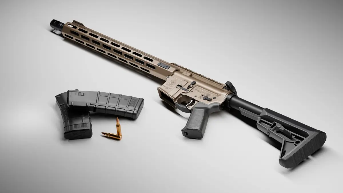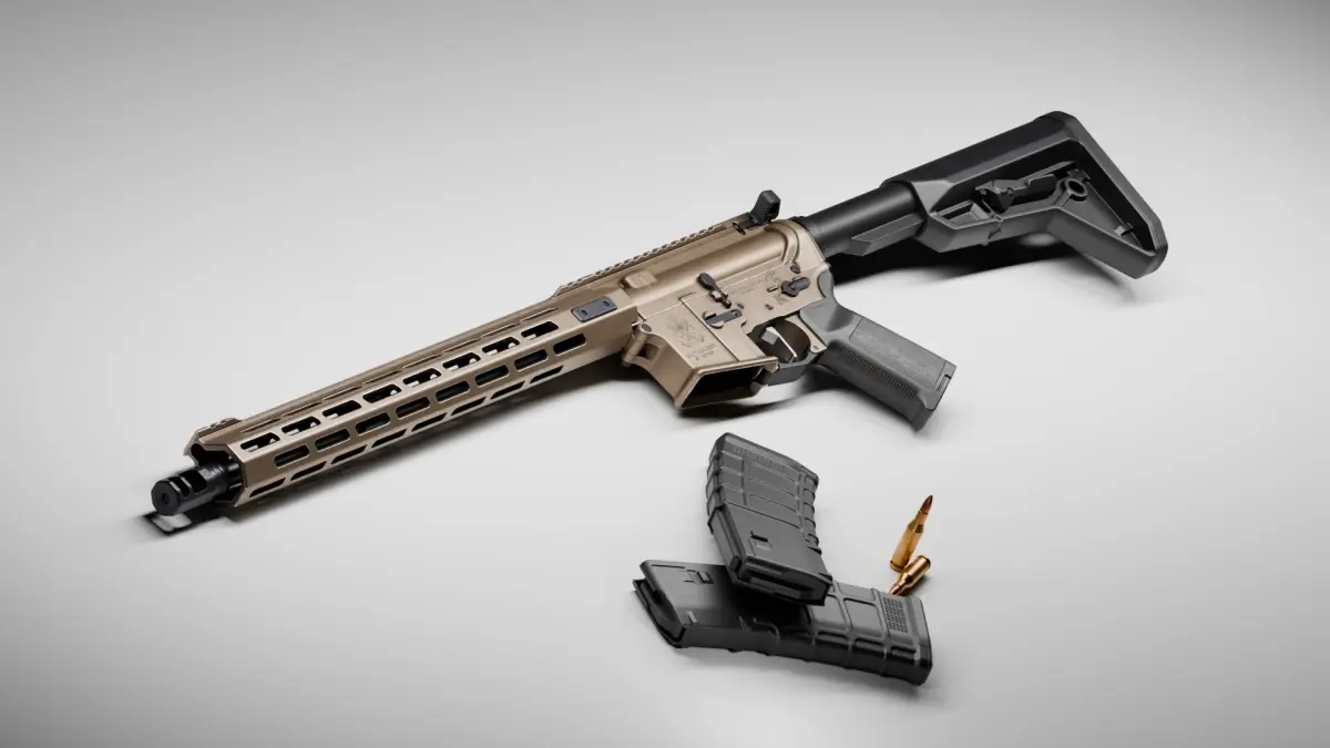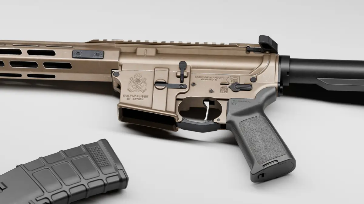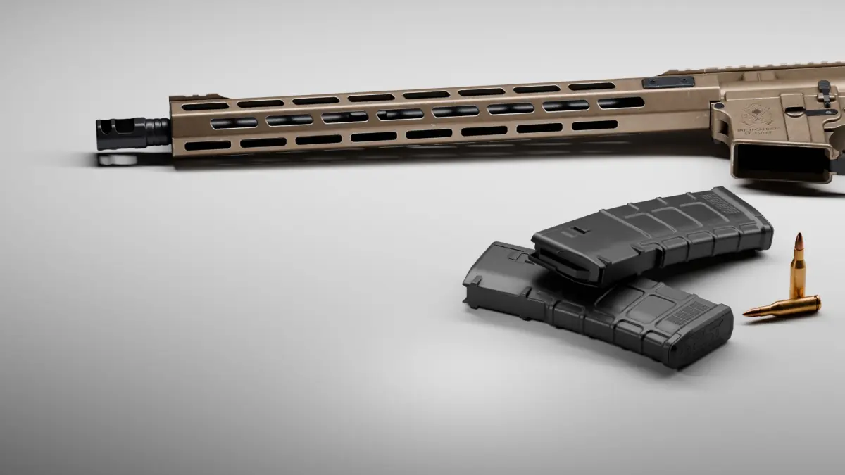 High quality low-poly model Springfield Armory Saint AR-15 5,56 created as close as possible to the original with exact dimensions, with highly detailed PBR textures (including textures for Unity and UE5 game engines).