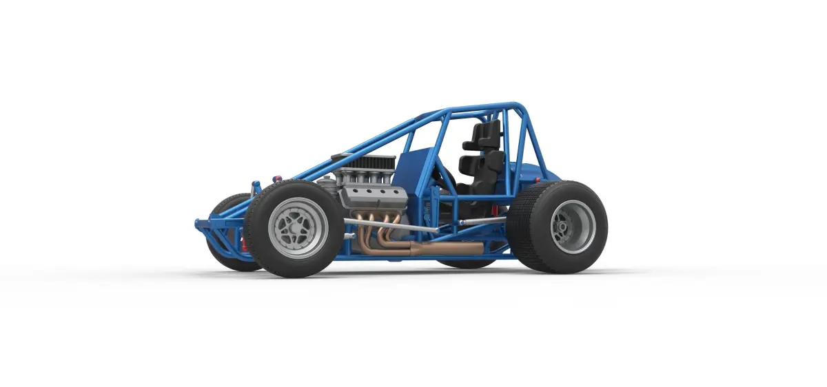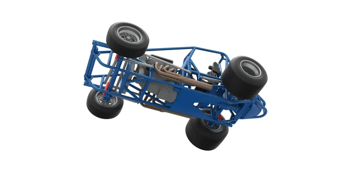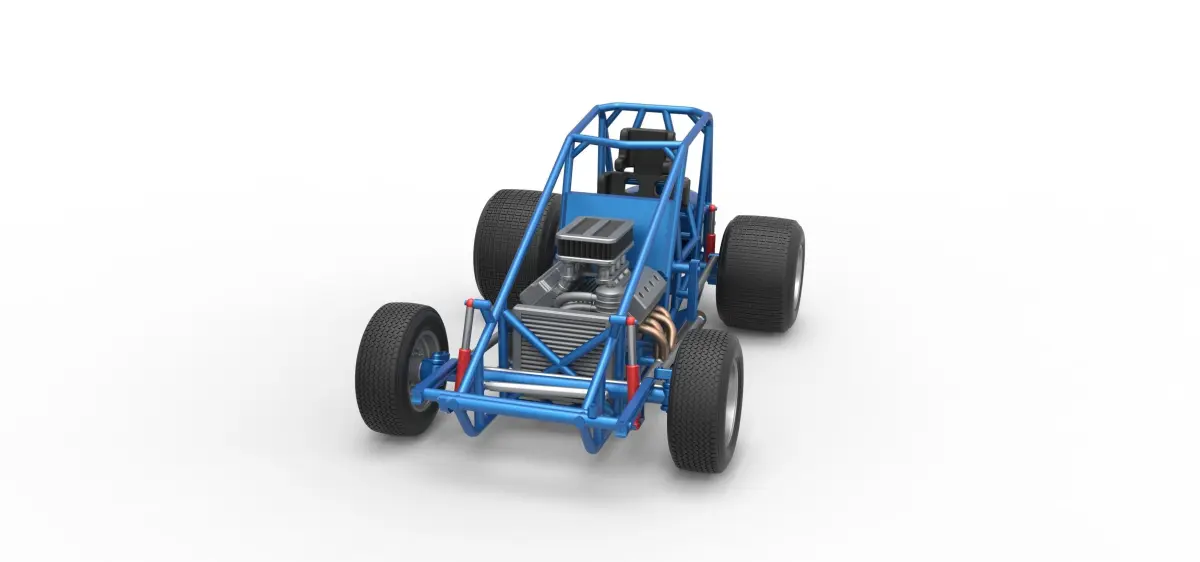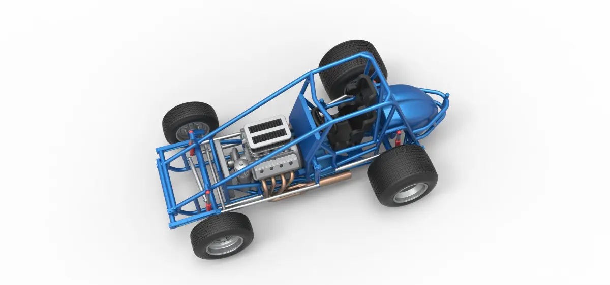 The model consists of parts: Air intake part 1-3, Body, Engine left part, Engine main part, Engine right part, Exhaust pipes, Front rims, Front tires, Left exhaust pipes, Radiator, Rear left tire, Rear right tire, Rear rims, Right exhaust pipes, Seat, Steering wheel, Tank, Visor.