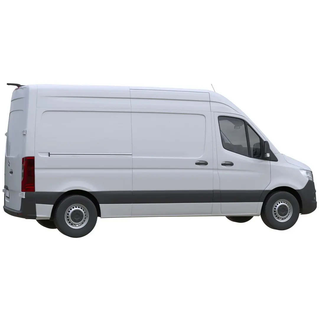 Mercedes-Benz Sprinter of the third generation (2018-…). All-metal van. 4 vehicle lengths: compact, standard, long and extra long. 3 roof heights: standard, high and extra high. Cargo compartment volume up to 17 m3. Available in max gross weights of 3000 kg, 3500 kg, 4100 kg and 5000 kg. Maximum payload 2675 kg for Sprinter with standard roof with a maximum permissible total weight of 5000 kg. Available in front, rear and all-wheel drive options.