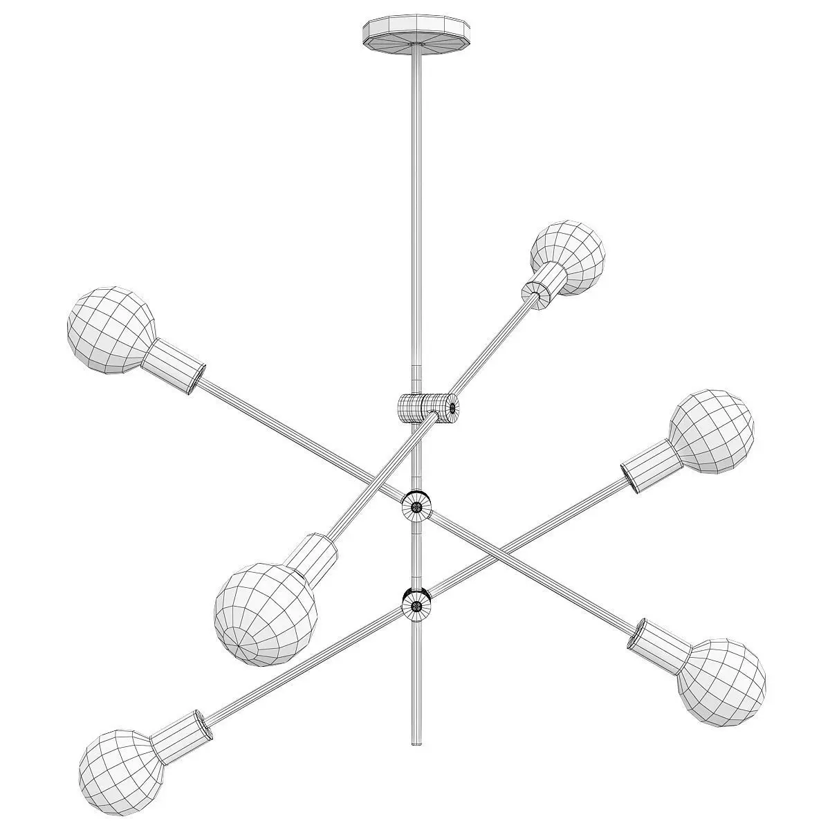 Name: Sputnik_Chandelier_Light_Fixture_Minimalist_Metal_Bedroom_Ceiling_PendantVersion: 2013Units: MillimetersDimension: 991.34 x 884.61 x 1148.15Polys: 8 148...turbosmoth 1 iteration _ 64 704Model Parts: 1Render: V-RayFormats: 3Ds Max 2013, OBJ