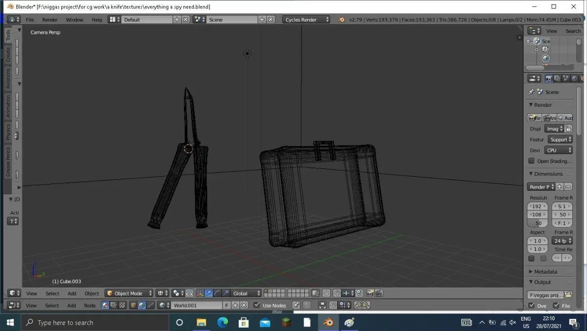 just a normal bag and a butterfly knife FEELS GOOD! FBX, obj, 3ds, stl, blend, a normal spy stuff toke like 2 days for no reason and i hope you like it