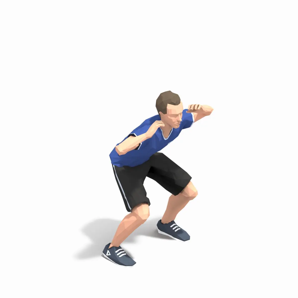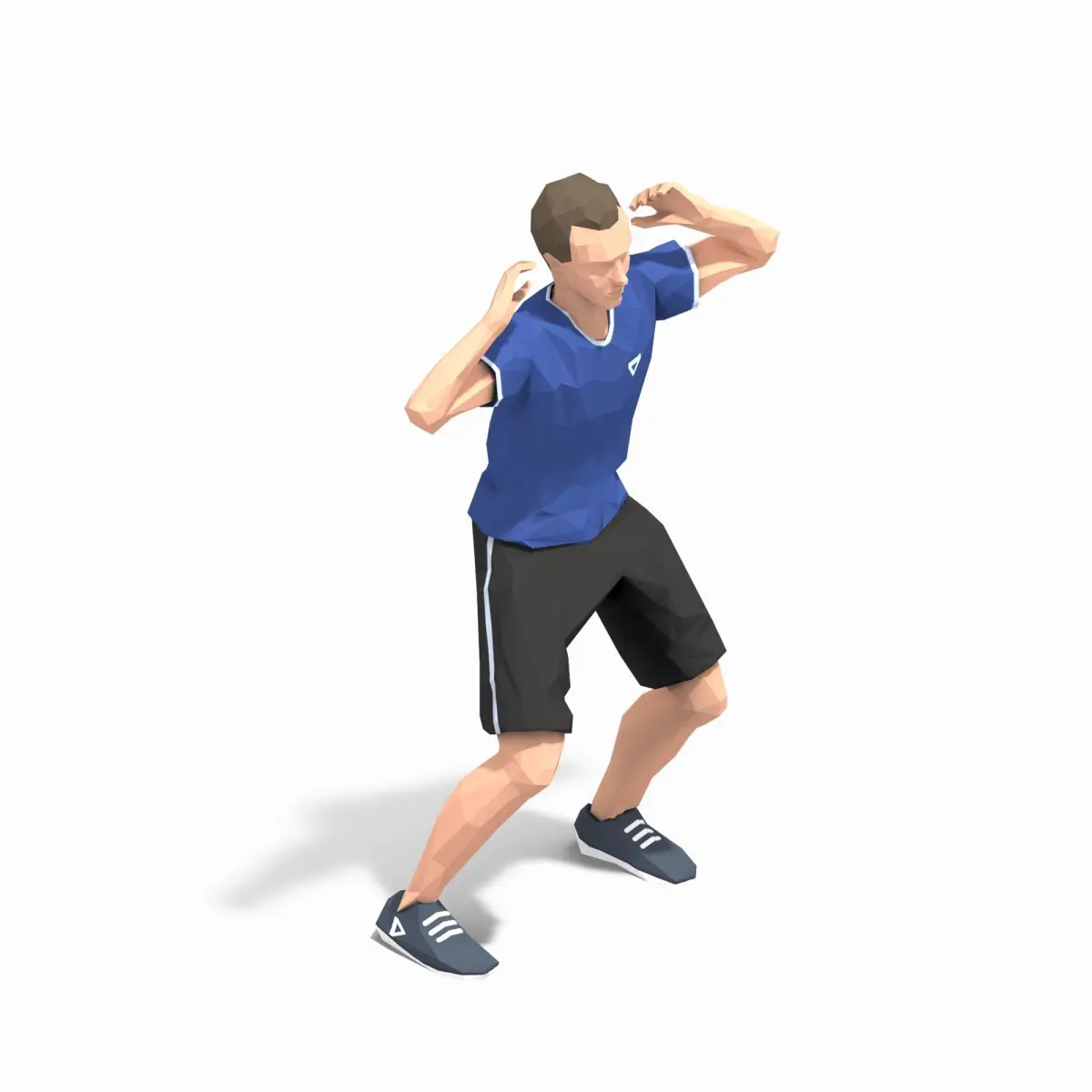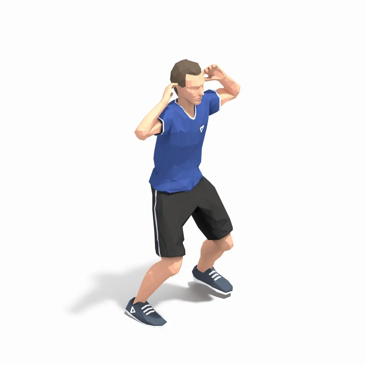 Animations of exercise Man Low poly3d model in flat surface style.Animation created in CAT system and exported to FBX files for loop sequence.Extra textures as bonus