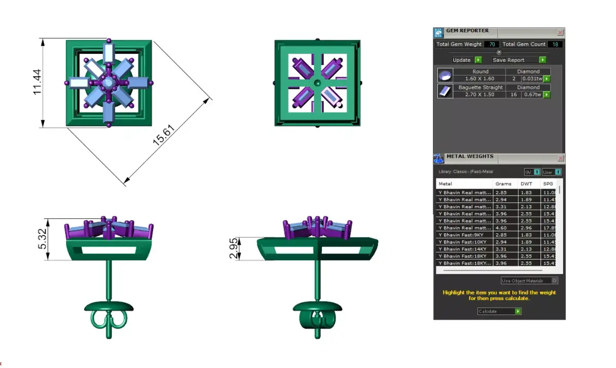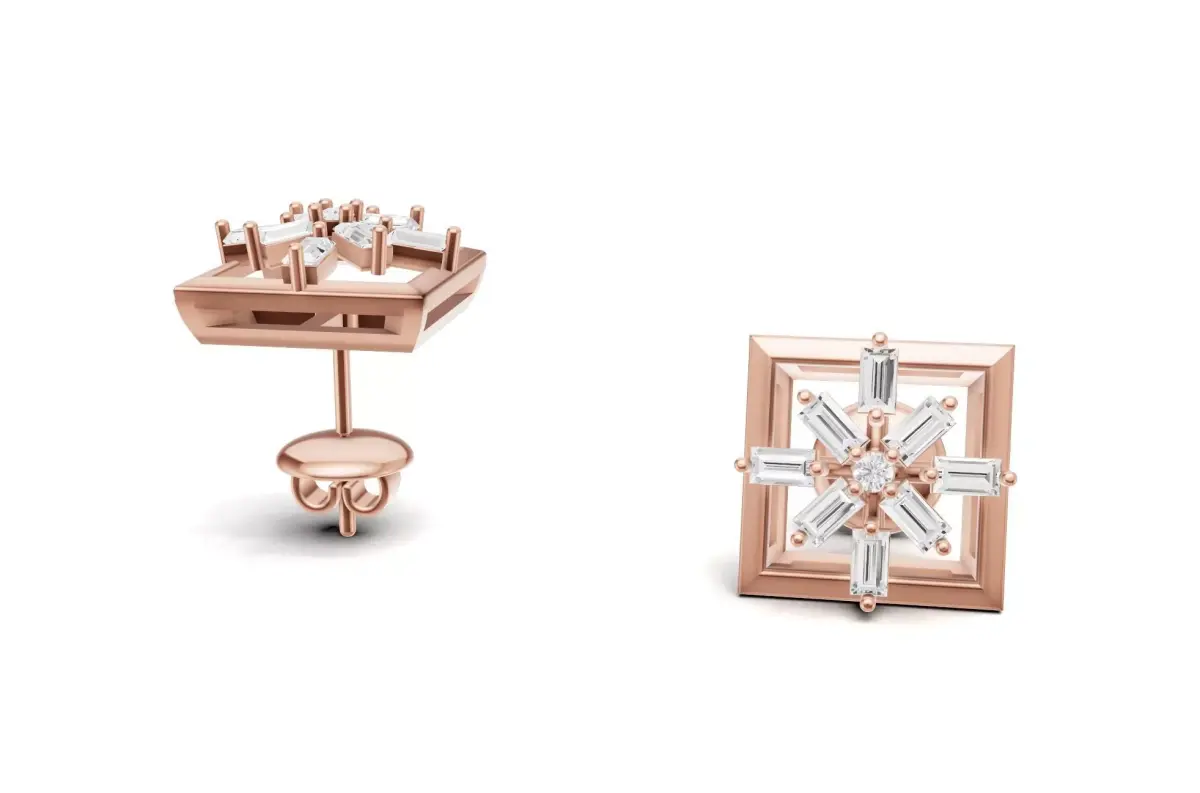 Square Baguette Diamond Stud Earrings 3D print model