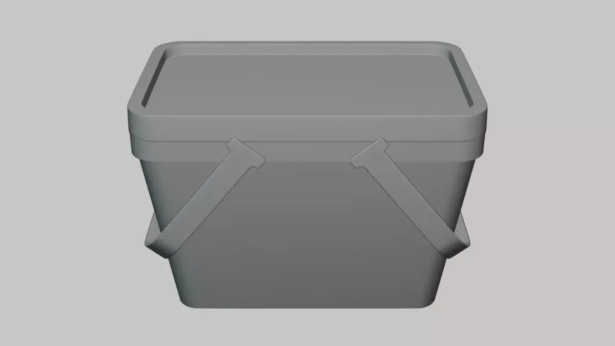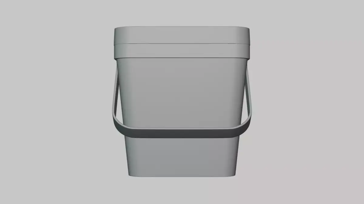 3D model of a square-shaped plastic bucket with a handle and lid. Perfect for product visualization, household packaging mockups, and industrial storage designs. Clean topology and UV mapping included for easy texturing. No materials or textures.