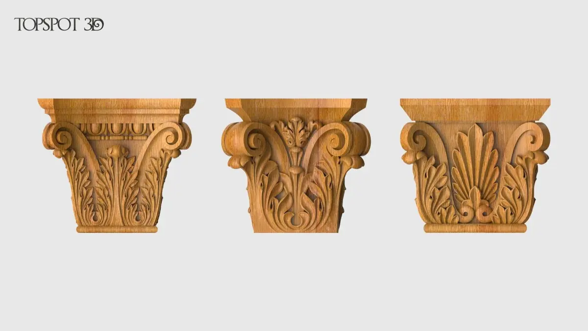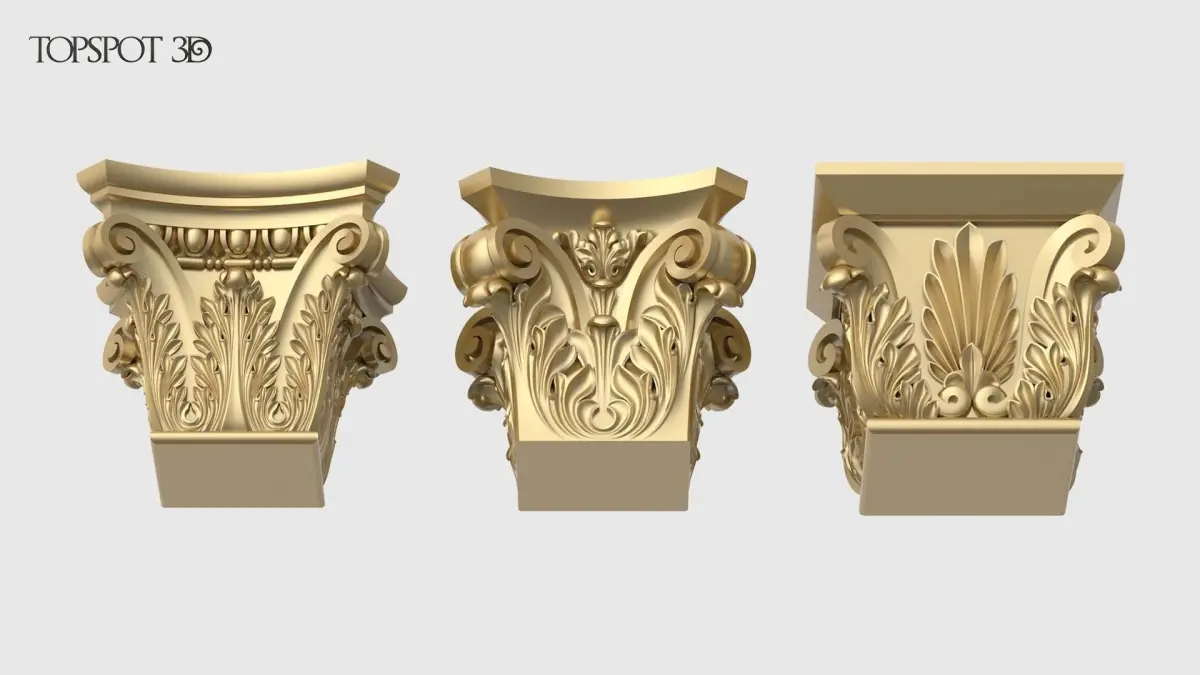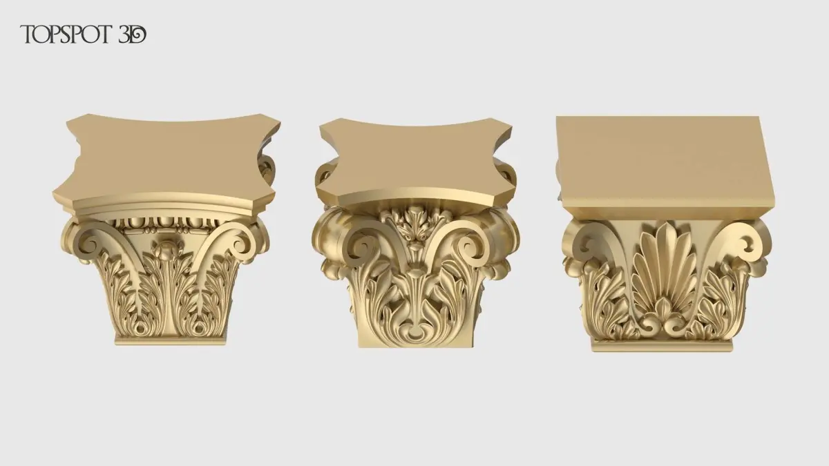 This set of 3 square-section capitals is perfect for interior and furniture decoration in a classic style.