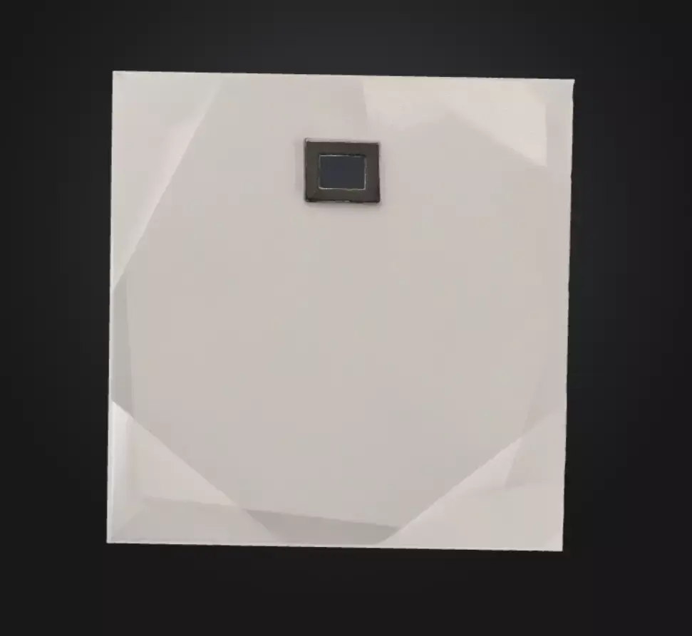 This is a striking and unique 3D model of a geometric ceiling lighting fixture that will instantly become a focal point in any modern digital interior. Unlike traditional flat panels, this model features a large, square white panel with a subtle, multi-faceted design. The surface is broken into various flat geometric planes, creating a sophisticated and minimalist texture that catches light in a visually interesting way.
