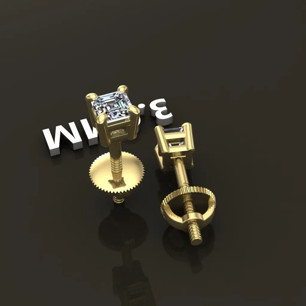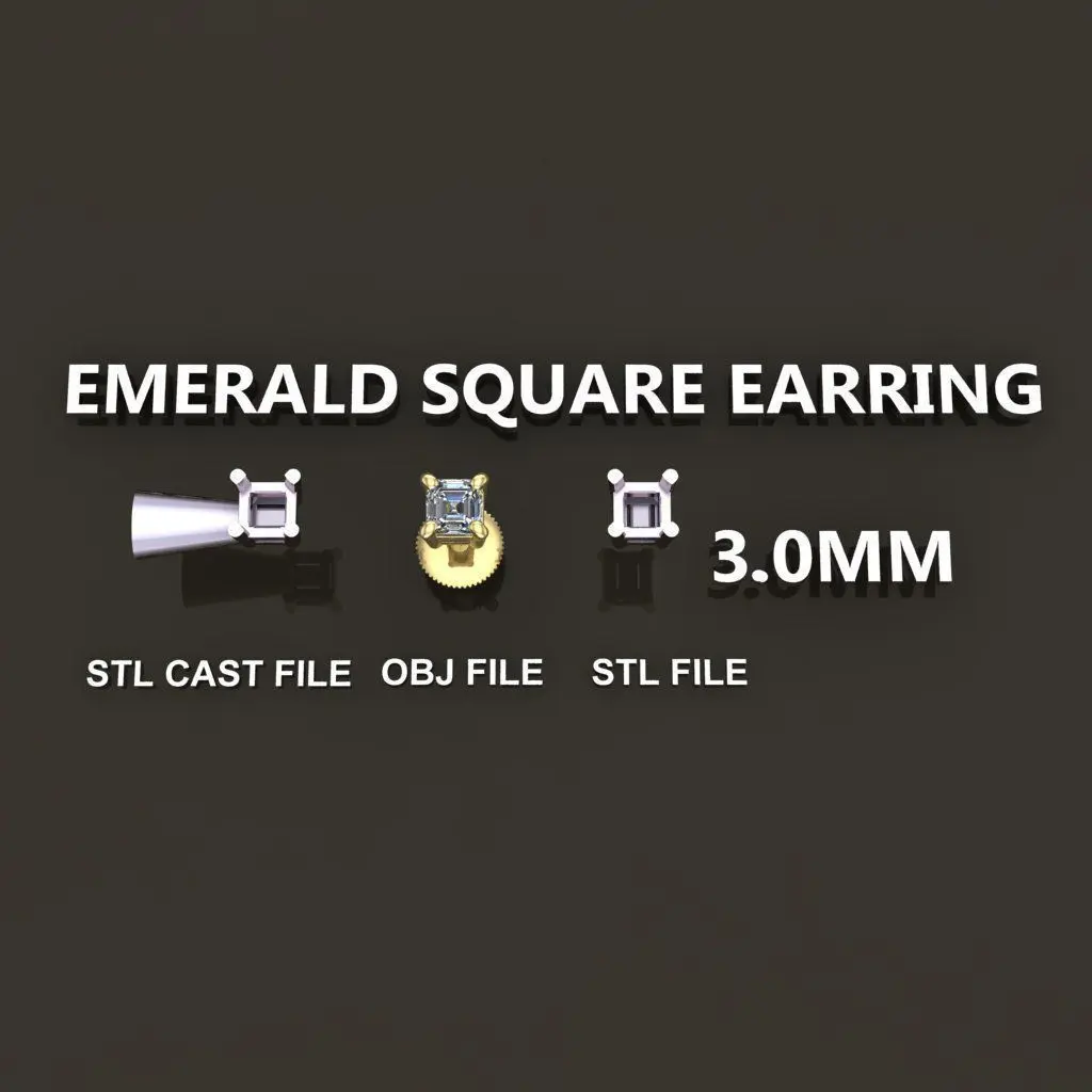 SQUARE EMERALD CUT 4 PRONG SOLITAIRE EARRING ( 3.0MM )