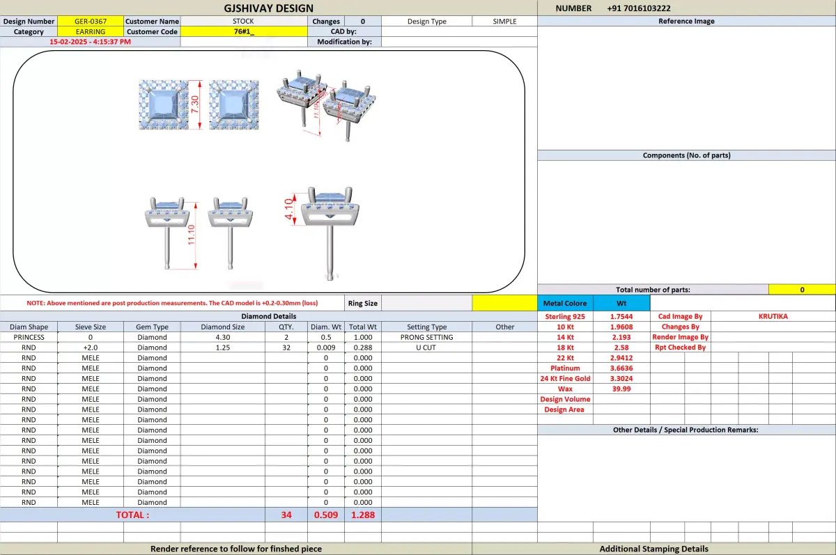 This 3D CAD model can be used forJewelry manufacturing and castingGold, silver, or rose gold stud earring productionJewelry prototyping and sample developmentBridal and luxury jewelry collectionsRetail and wholesale jewelry manufacturingCustomization and resizing as per brand requirements