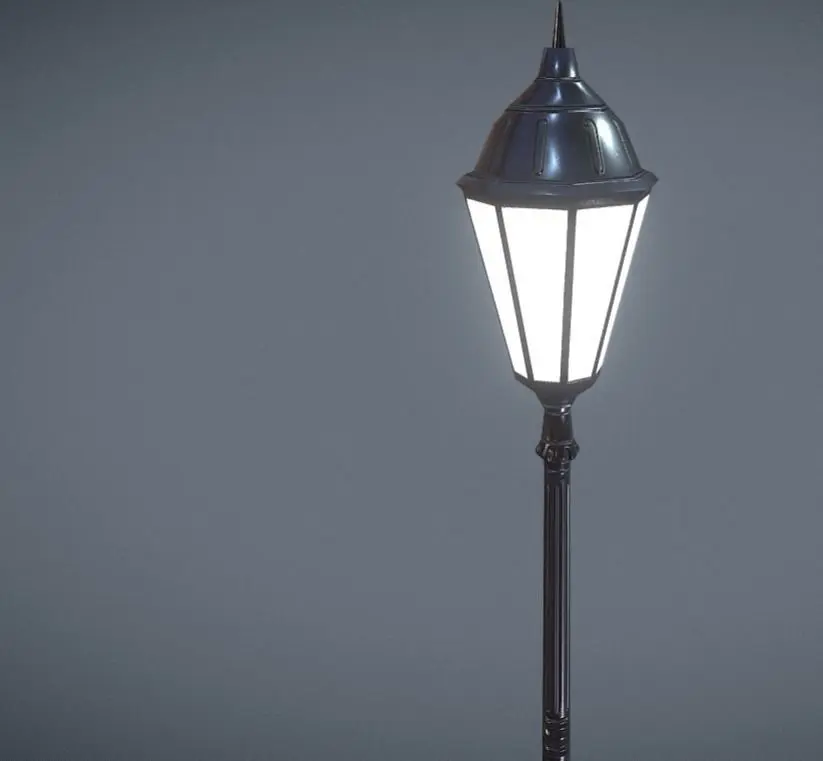 Poste de luz de praça low-poly leve para games, perfeito para decoração de ambiente urbano. Compatível com Unity 3D e Unreal Engine.