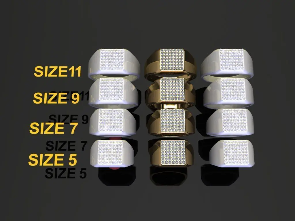 Square Signet Diamond Cluster Ring Band Mix Size