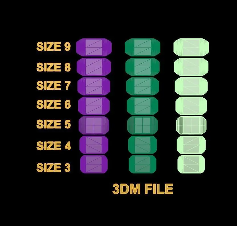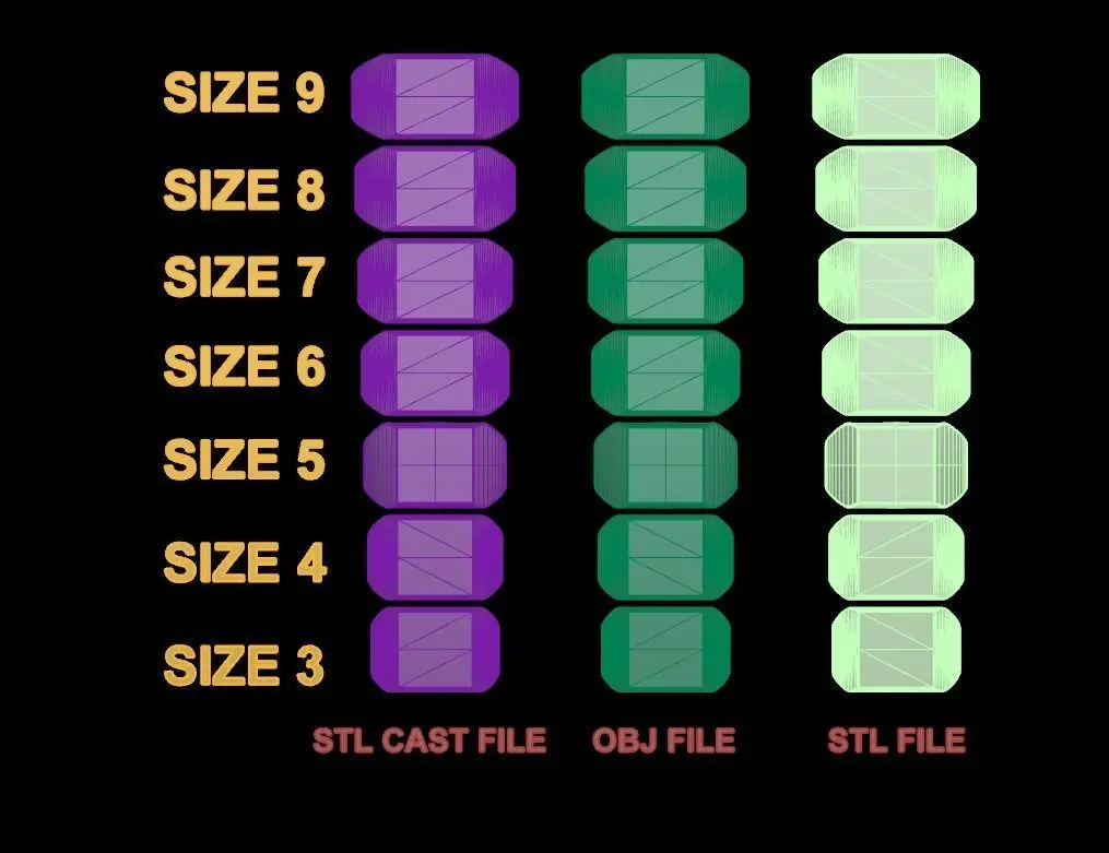 File Type: 3dm ready for adjustment and personal use / STL (7 count / each file for each ring size) / STL CAST (7 count / each file for each ring size) / OBJ (7 count / each file for each ring size)