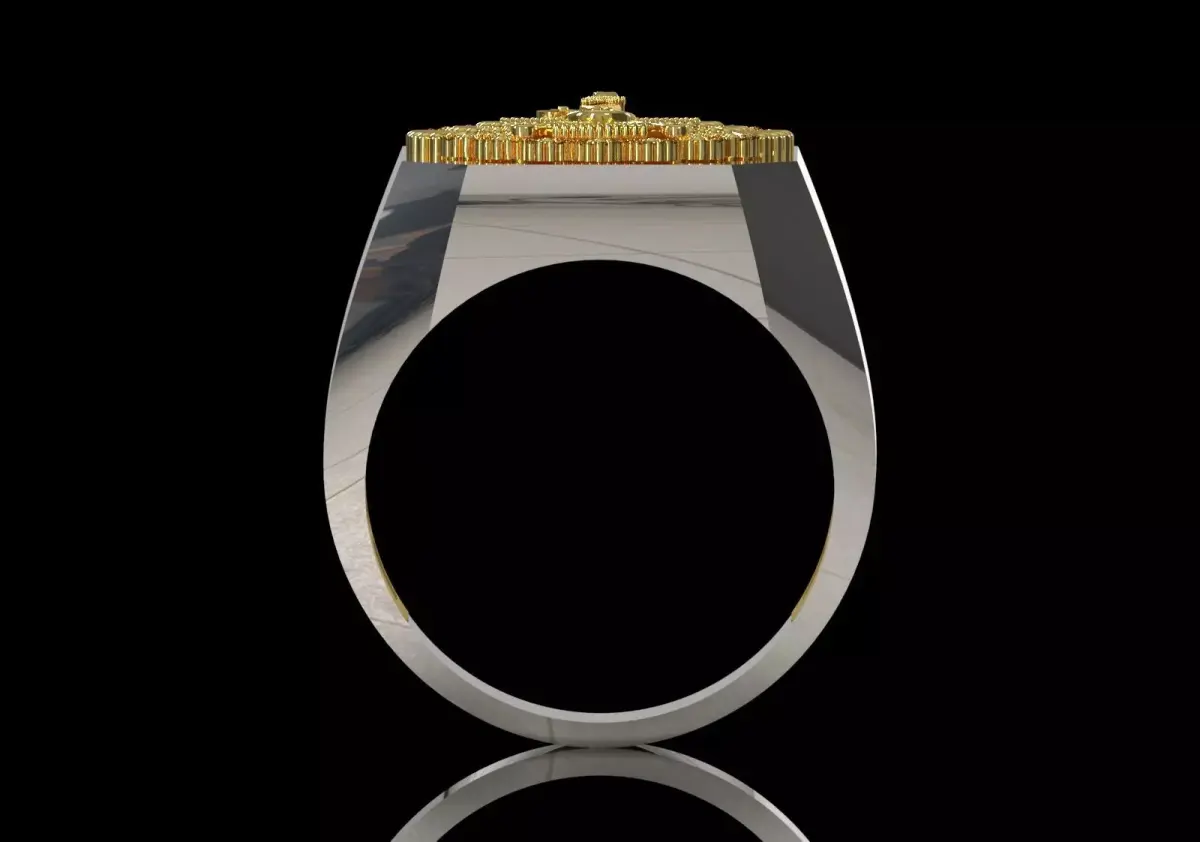 The MR0302 ring, with Crown Eagle motif, square frame and large volume of two-tone metal, is a symbol of power, authority, ambition and classic heritage. It is a Statement Signet Ring that is very suitable for formal occasions, as a fashion ring or a valuable gift and focuses on displaying magnificence and dignity.