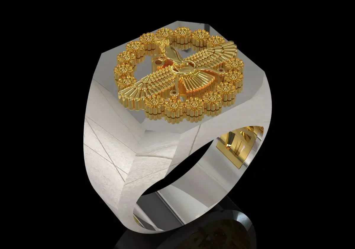 Ring MR0302: Square Signet Ring with Crowned Eagle Motif, a symbol of classic power, authority and glory